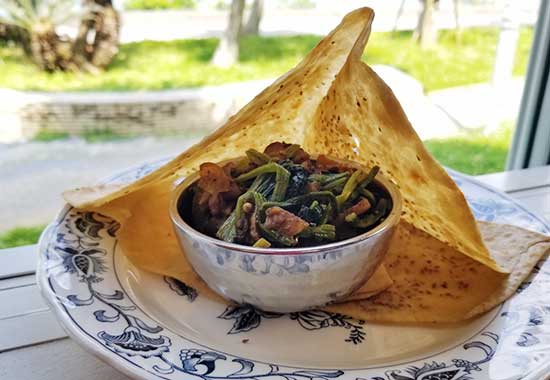 ドサ、イドゥリー、ビリヤニなどの南インド料理のほか、ヒージャーや沖縄野菜を使ったメニューも!
